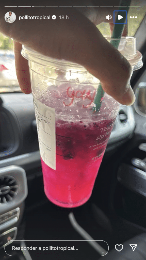 Lejos de callar, Pollito reaccionó con la naturalidad que lo caracteriza: “Yo no entiendo cómo todavía hay personas que piensan que por decirme gay me van a insultar. Vamos al pan pan y al vino vino: yo soy maricón, tronco maricón, eso no me ofende para nada. Lo que no sé es cómo reaccionar porque hace años no me pasaba algo así. No sé si ir a Starbucks y quejarme con el manager, pero sé claramente quién fue la persona”.