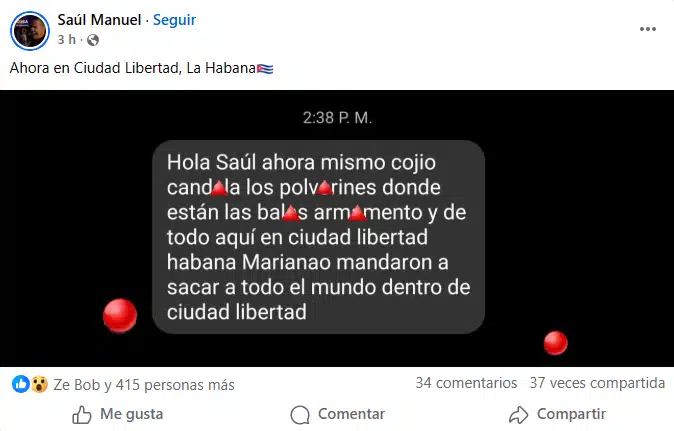 “Sacaron a toda Ciudad Libertad”; “Yo no sé, solo sé que llamaron a los padres y me subió hasta la presión porque mi hija está ahí y dijeron que no miraran ni para atrás y que se fueran corriendo” y “Mi nieta estudia ahí. Unos dicen que activaron una bomba y otros que el polvorín cogió candela. No se sabe. Hemos pasado un susto que estoy con temblores”, expresaron otros cubanos sobre lo sucedido.