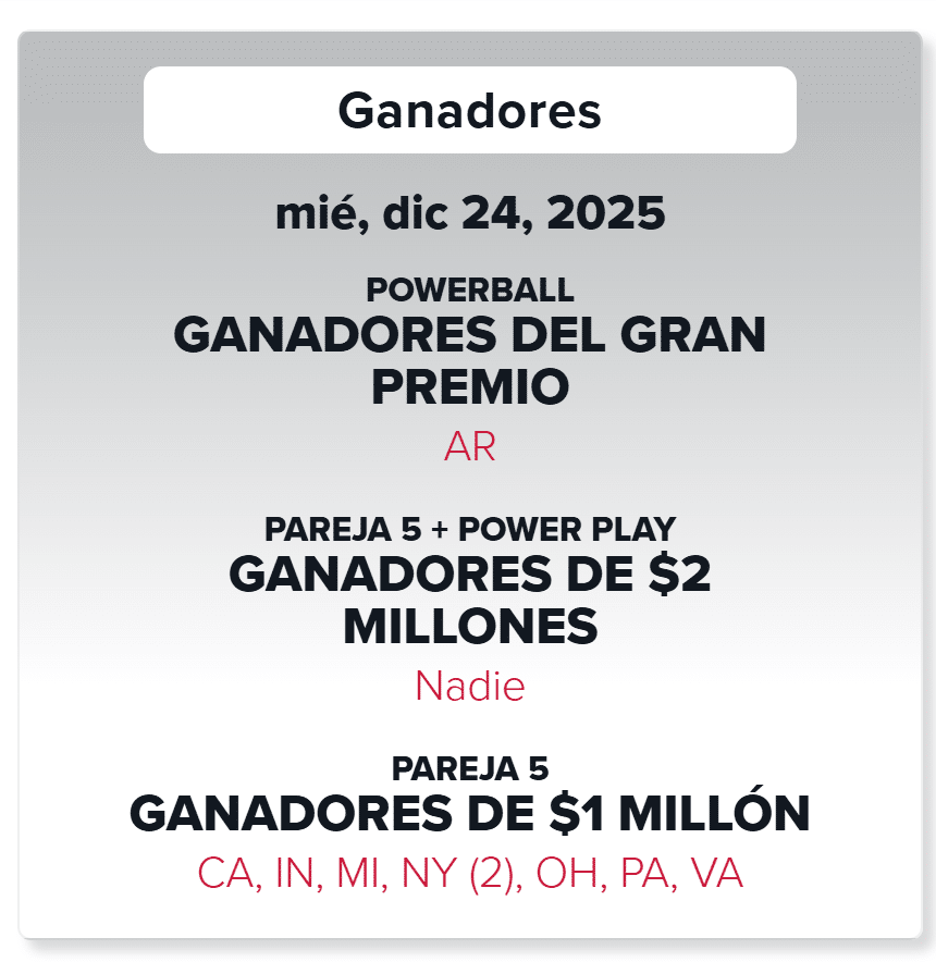 Un boleto vendido en Arkansas acertó los seis números del sorteo del 24 de diciembre de 2025 y se llevó 1.817 mil millones de dólares, solo por detrás del récord de 2022 en California. En la Florida, nadie se ganó siquiera un milloncito.
