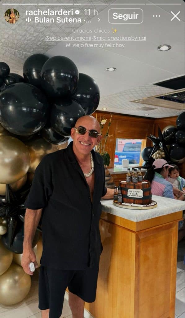 Bajo un cielo sin nubes y con el Atlántico como testigo, Rachel Arderi decidió que su padre no merecía menos que un cumpleaños flotante. ¿El escenario? Un yate que parecía sacado de un videoclip de lujo, surcando las aguas de Miami Beach con toda la familia a bordo. Pero el detalle que robó el show no fue solo la postal marítima, sino el pastel que resumía con humor ácido y mucho estilo la esencia del homenajeado.