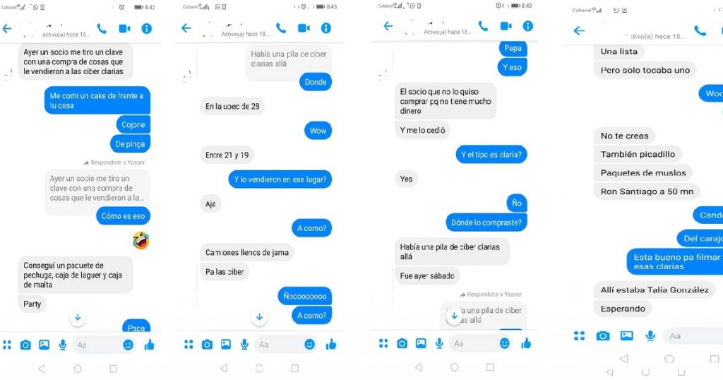 La fuente explicó a Cubacomenta que él pudo comprar todo eso porque en su edificio reside uno de estos guerrilleros cibernautas cubanos – a los que llama “claria” – quien no pudo ir al lugar a comprar los productos porque no tenía dinero para comprarlos, y le cedió su ticket al amigo.