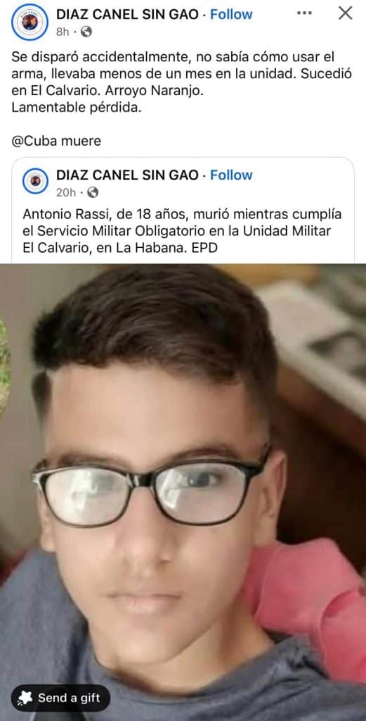 Sin embargo, la página de Facebook Díaz Canel Sin Gao afirmó que Rassi “se disparó accidentalmente” porque “no sabía cómo usar el arma”, ya que “llevaba menos de un mes en la unidad”.