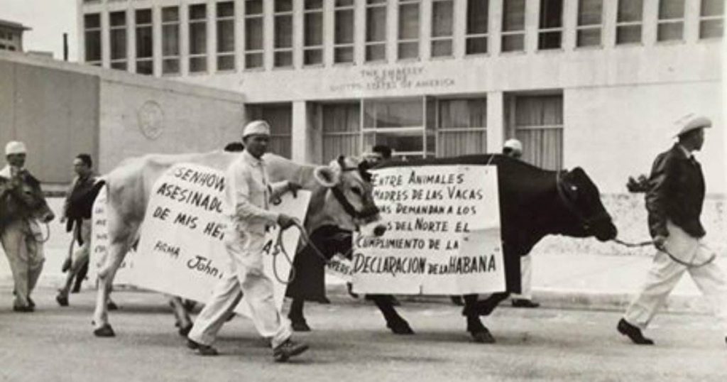 Este sería el primer y muy bizarro antecedente de la protección animal en Cuba, aunque con motivos puramente políticos. Décadas después, jóvenes activistas por los derechos de los animales alzarían otros carteles ante las sedes de Zoonosis y del Ministerio de la Agricultura, para protestar por otras tantas muertes cuya responsabilidad no se podría acreditar a un accidente cósmico.