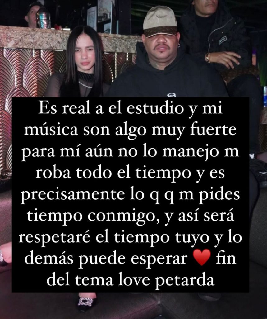 En una historia de Instagram el fin de semana, el intérprete del hit “Marca mandarina” pidió perdón a Suly, alegando que su vida de artista y compromisos profesionales le roban demasiado tiempo para compartir en pareja.