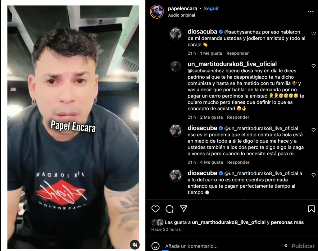 “Jodieron la amistad y mandaron todo al carajo”, escribió La Diosa, visiblemente herida. “Y lo del carro no es como cuentas, pero nada, entiendo que te pagan perfectamente”, disparó, insinuando intereses comerciales detrás de la “traición”.