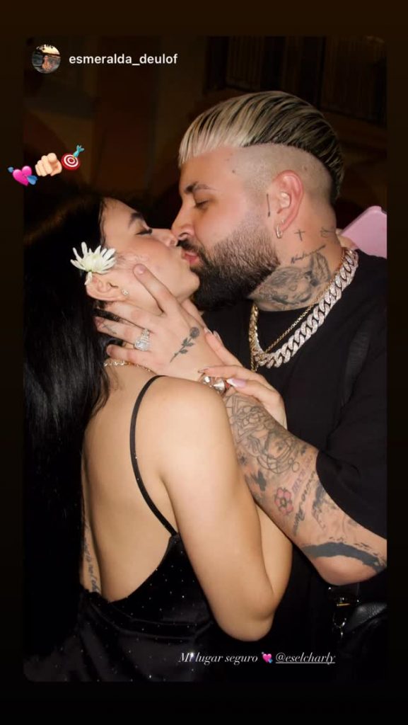 En las imágenes compartidas, se ve a Esmeralda emocionada, con la mano en la boca en señal de sorpresa, luciendo la joya que combina con sus tatuajes y su característico nail art. Ella no se quedó atrás y también gritó su amor a los cuatro vientos con una foto de un beso y un mensaje contundente: «Mi lugar seguro @eselcharly».