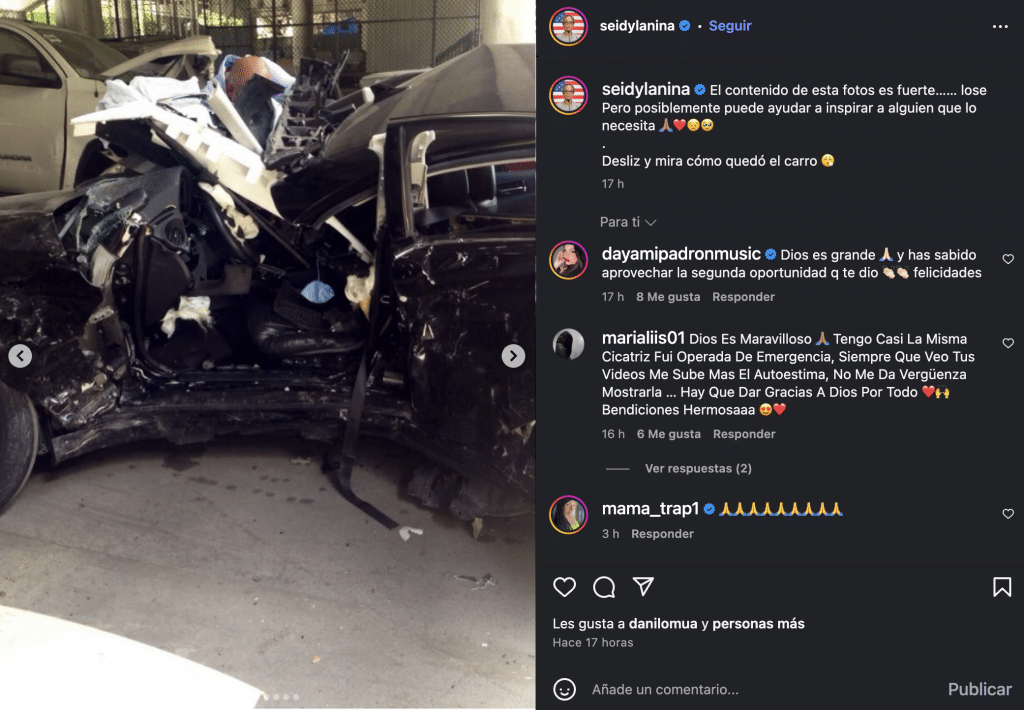 Seidy La Niña comparte fotos de cómo quedó su carro a 11 años del accidente que casi le cuesta la vida