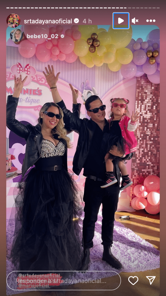 Cuando la familia hizo su entrada al lugar donde los invitados los esperaban, Señorita Dayana y Victoria llevaban vestidos a juego de corte princesa con tul, pero esta vez en color negro y complementados con gafas de sol. A su lado, Mario también lucía un conjunto del mismo tono.