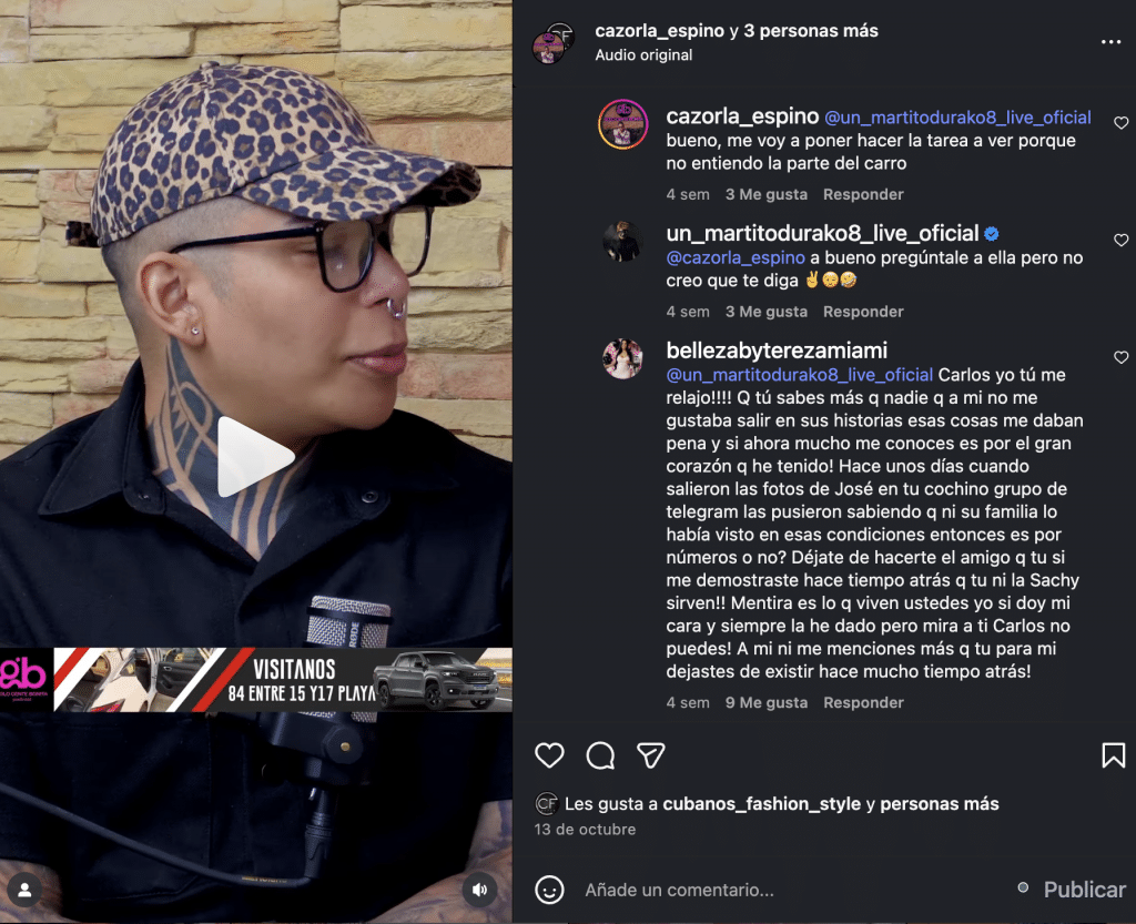 La tensión dentro del ecosistema de la farándula cubana volvió a subir de tono, esta vez de la mano de Teresa Padrón, empresaria, influencer y ex booking manager del fallecido reguetonero El Taiger. Lo que comenzó como una entrevista aparentemente tranquila en el programa Solo Gente Bonita terminó desatando una tormenta cuando, en los comentarios del video publicado en Instagram, Teresa decidió romper el silencio y llamar directamente por su nombre a la figura anónima detrás del proyecto Un Martí To Durako.