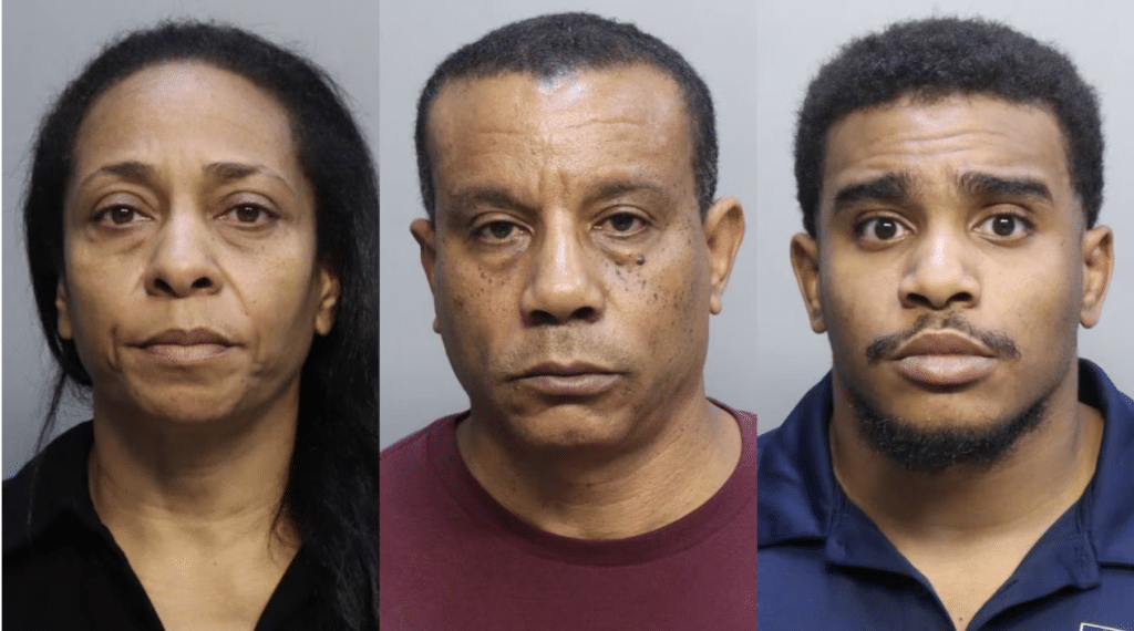 Los tres fueron arrestados y enfrentan cargos de gran robo en primer grado, esquema organizado para defraudar y conspiración, señalan WPLG y CBS News.