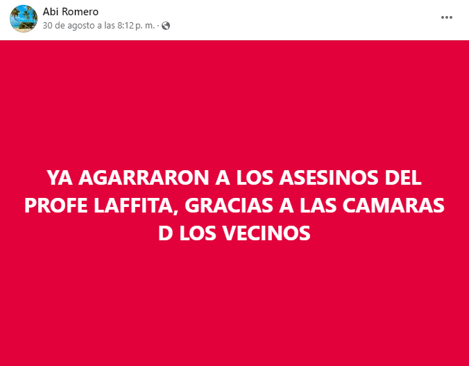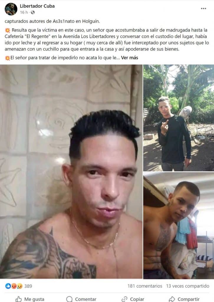 Mientras, en el grupo “Revolico Holguín”, de la citada red social, el internauta Abi Romero notificó que ya habían “agarrado” a “los asesinos del profe Laffita gracias a las cámaras de los vecinos”.