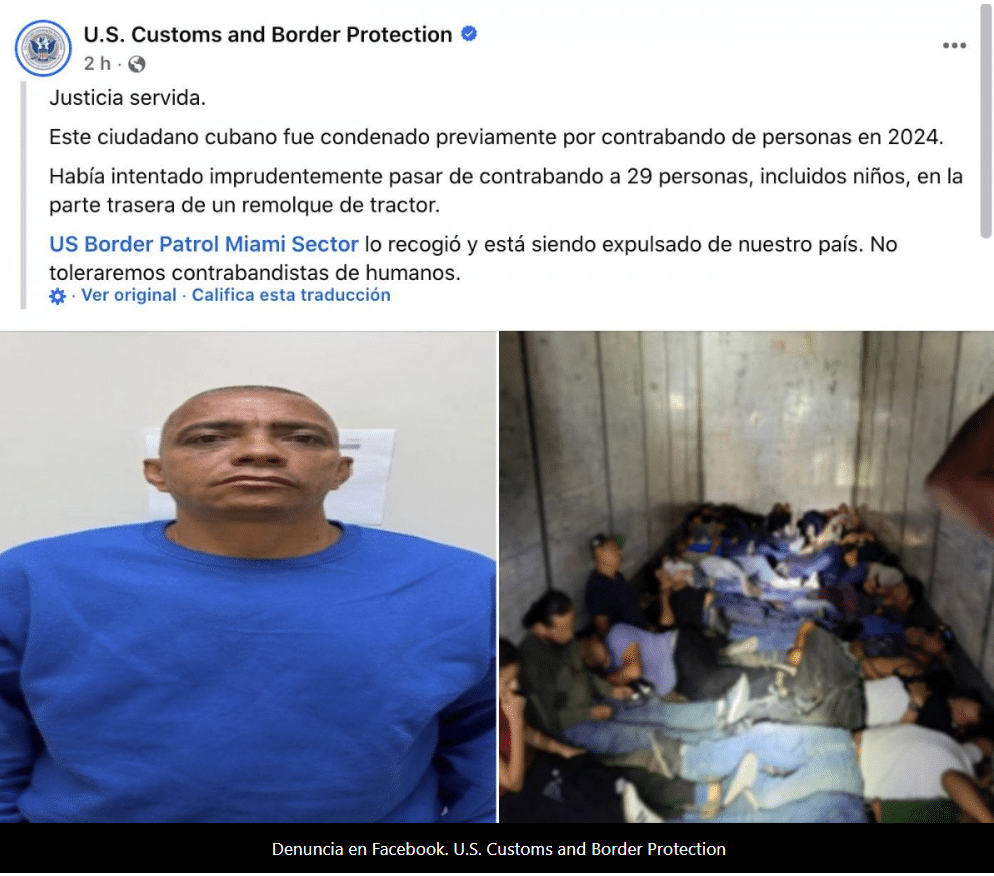 El primer caso lo dio a conocer la Oficina de Aduanas y Protección Fronteriza. Un ciudadano cubano, cuya identidad no fue revelada, fue deportado tras ser hallado culpable en 2024 de intentar introducir de manera ilegal a 29 migrantes, entre ellos menores de edad, en la parte trasera de un camión.