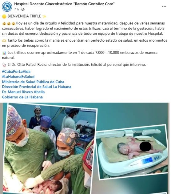 En una Habana donde cada embarazo se vive sorteando apagones, escasez y colas infinitas, una madre habanera acaba de convertirse en símbolo de resistencia cotidiana: dio a luz a trillizos en el Hospital Ginecobstétrico Docente Ramón González Coro, uno de los centros de referencia para la maternidad en la capital. El parto, informado por la propia institución en su página de Facebook y retomado por medios independientes, terminó con madre y bebés en buen estado general, una frase que en la Cuba de hoy suena casi a milagro.