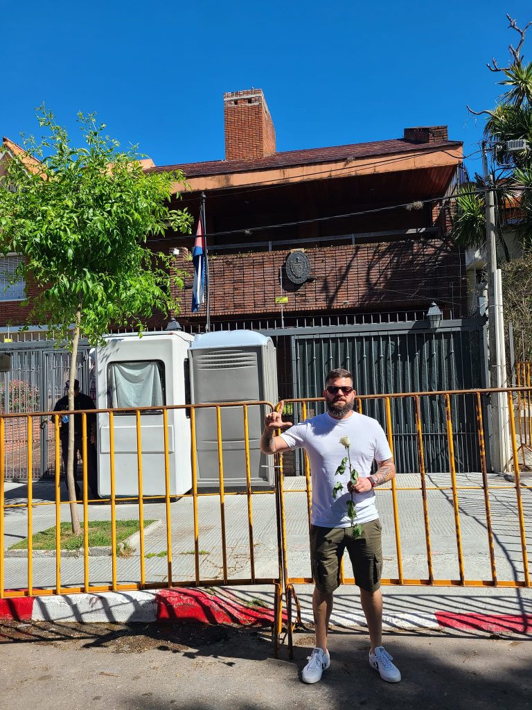 Anibal Oliva Yañez afirma desde la capital uruguaya que el resto de los cubanos presentes allí, en la manifestación pacífica organizada frente a la Embajada de Cuba en Uruguay apoyaron y celebraron muchísimo su hermoso gesto por la paz, contra la violencia y contra el odio. Su rosa blanca es el mensaje que ellos traían para los funcionarios cubanos. Es el mensaje que traen para todo el pueblo cubano. Y ese fue el mensaje que le dejaron en la puerta, para cuando los funcionarios llegaran este lunes a trabajar.