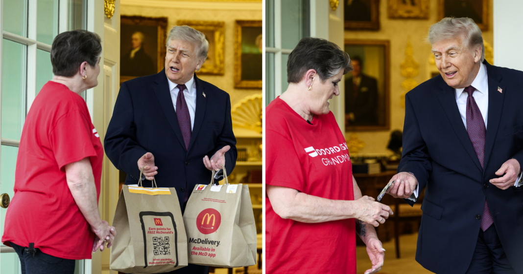 La protagonista involuntaria fue Sharon Simmons, repartidora de DoorDash, quien llegó hasta las puertas del Despacho Oval con dos bolsas de comida rápida mientras cámaras de medios registraban cada movimiento. Lo que se presentó como una escena espontánea formaba parte de una estrategia de comunicación de la Casa Blanca para destacar una de las banderas económicas del mandatario: la reducción de impuestos sobre las propinas.