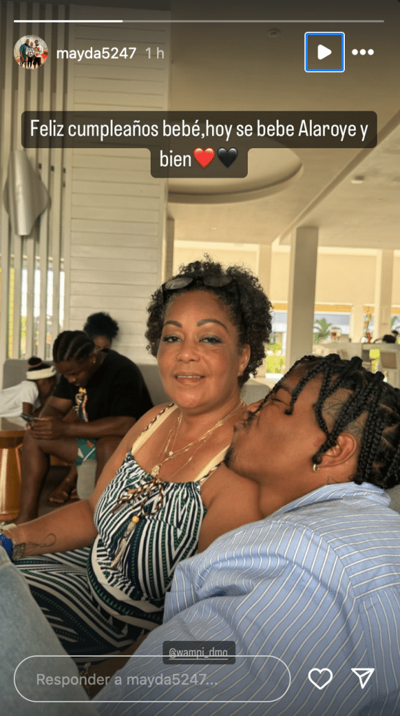La madre de Wampi, Ana Mayda Oruña, también le dedicó una historia por su cumpleaños, expresando: «Feliz cumpleaños bebé, hoy se bebe Alaroye y bien».